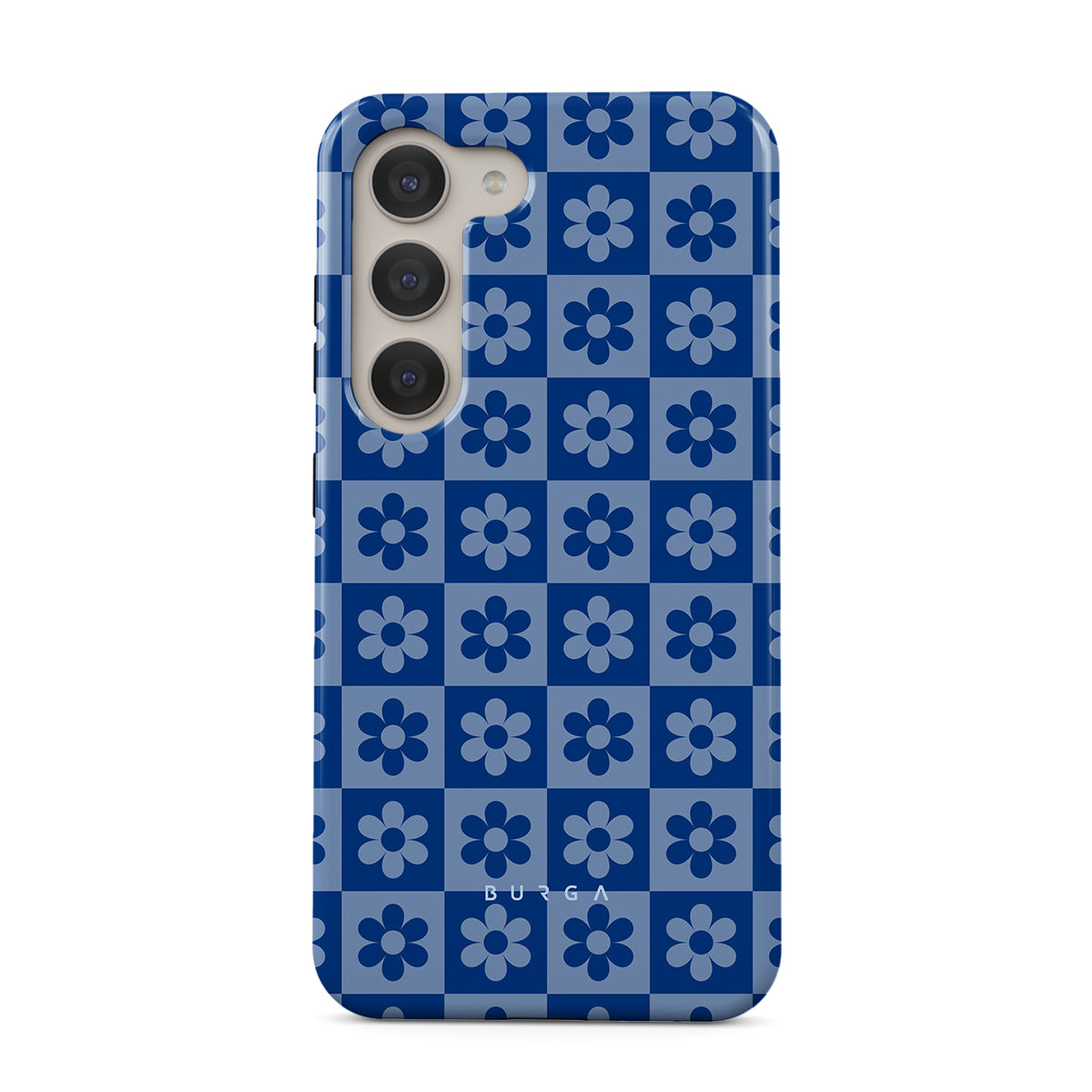 A true statement design, featuring a captivating checkered pattern with icy blue tones and a beautiful flower adorning each square. Our Samsung Galaxy S23 phone case not only offers reliable protection for your device but also captures the essence of the fun and carefree Y2K era. Embrace your inner flower child with the Bloom Boom phone case and let your tech bloom with style.