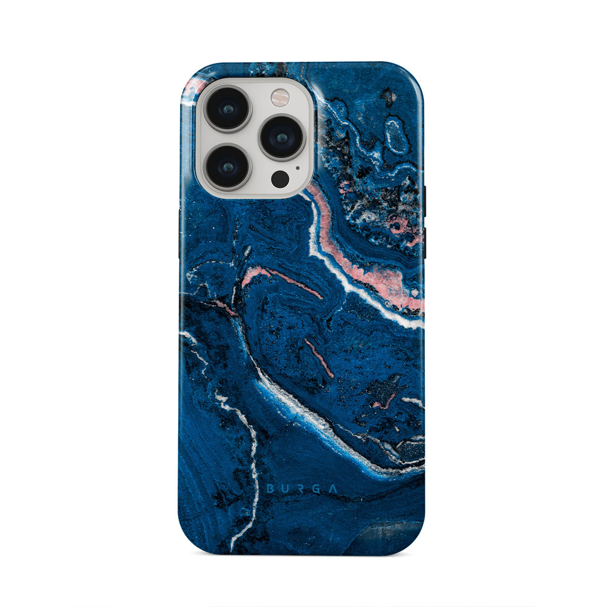 Electric indigo blue meets white, and pastel pink swirls in a unique marble pattern in our Blue Lagoon iPhone 13 Pro phone case. The modern take on a blue marble trend will look aesthetically pleasing on your device while offering durable protection from any falls.