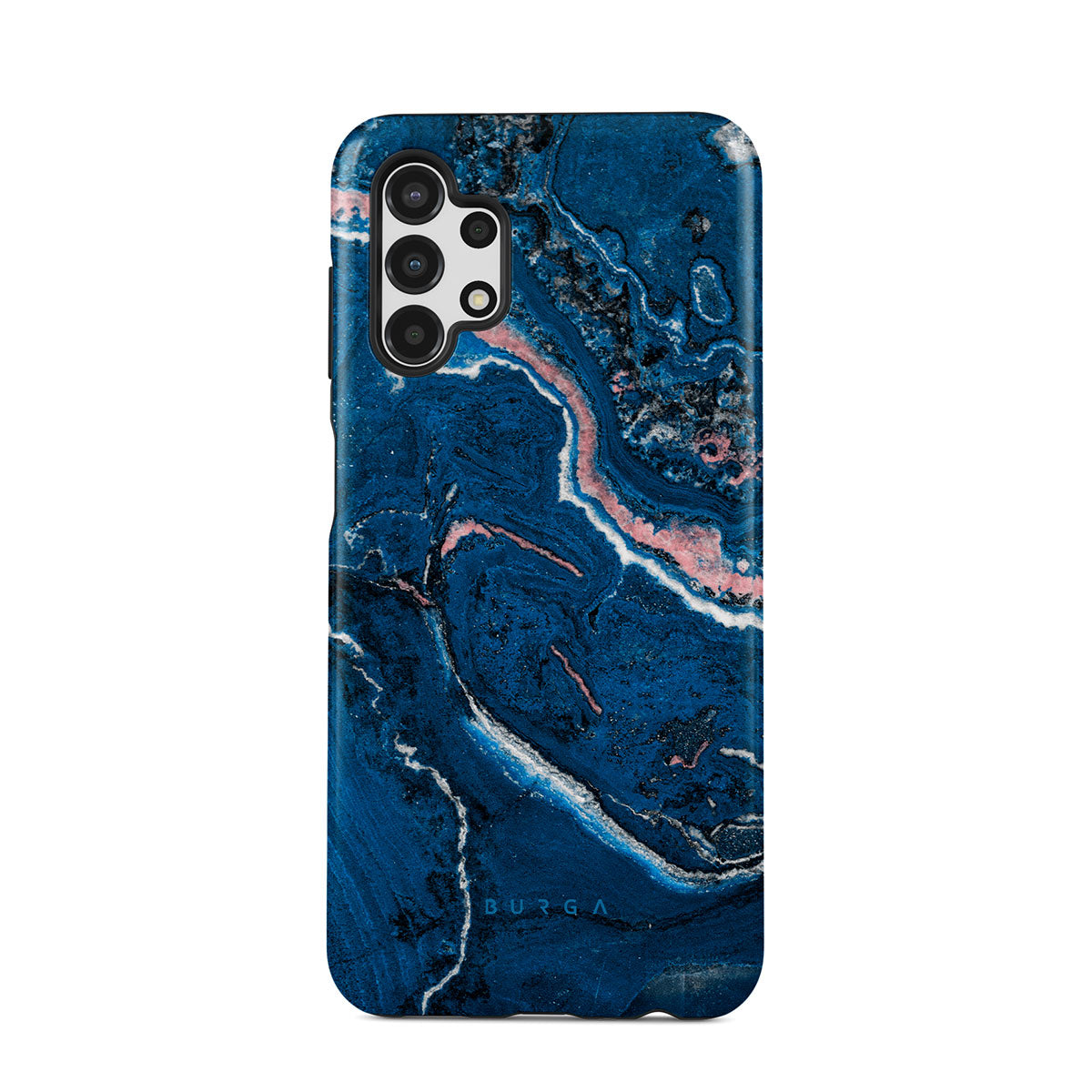Electric indigo blue meets white, and pastel pink swirls in a unique marble pattern in our Blue Lagoon Samsung Galaxy A13 4G phone case. The modern take on a blue marble trend will look aesthetically pleasing on your device while offering durable protection from any falls.