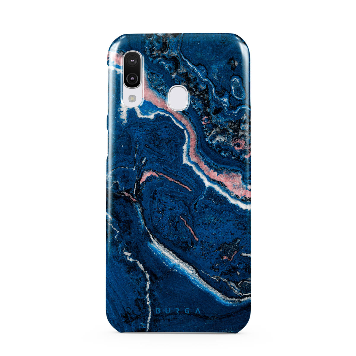 Electric indigo blue meets white, and pastel pink swirls in a unique marble pattern in our Blue Lagoon Samsung Galaxy A40 phone case. The modern take on a blue marble trend will look aesthetically pleasing on your device while offering durable protection from any falls.