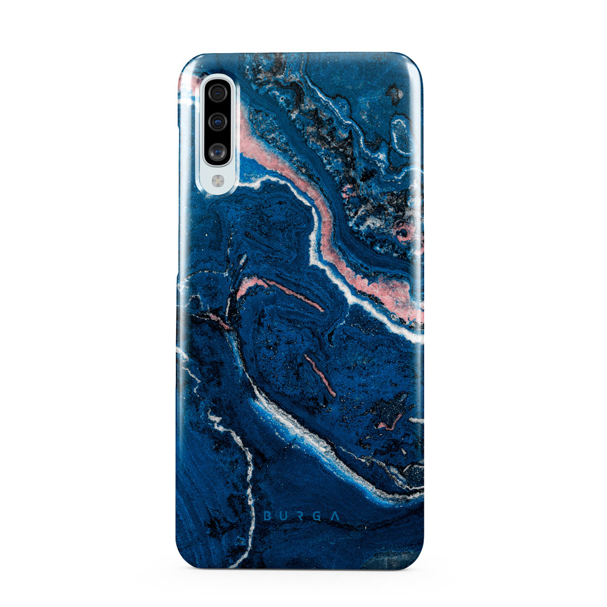 Electric indigo blue meets white, and pastel pink swirls in a unique marble pattern in our Blue Lagoon Samsung Galaxy A50 phone case. The modern take on a blue marble trend will look aesthetically pleasing on your device while offering durable protection from any falls.