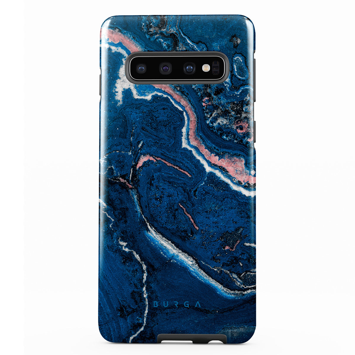 Electric indigo blue meets white, and pastel pink swirls in a unique marble pattern in our Blue Lagoon Samsung Galaxy S10 phone case. The modern take on a blue marble trend will look aesthetically pleasing on your device while offering durable protection from any falls.