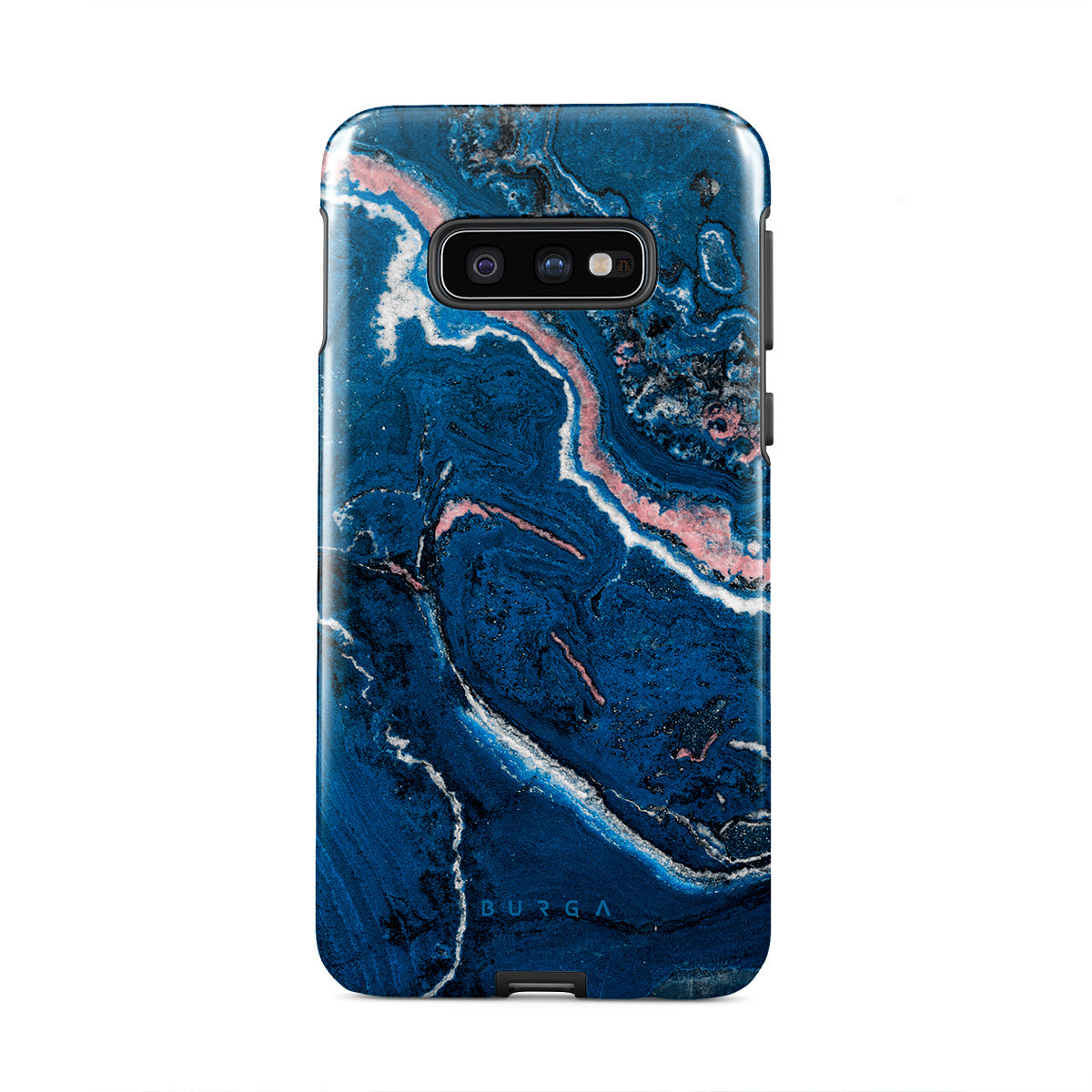 Electric indigo blue meets white, and pastel pink swirls in a unique marble pattern in our Blue Lagoon Samsung Galaxy S10E phone case. The modern take on a blue marble trend will look aesthetically pleasing on your device while offering durable protection from any falls.
