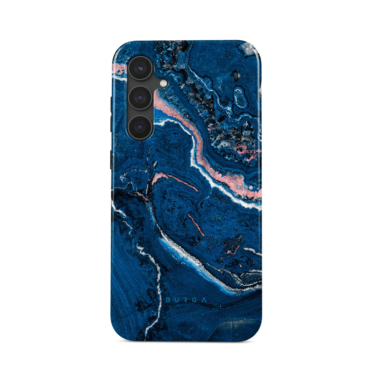 Electric indigo blue meets white, and pastel pink swirls in a unique marble pattern in our Blue Lagoon Samsung Galaxy S23 FE phone case. The modern take on a blue marble trend will look aesthetically pleasing on your device while offering durable protection from any falls.