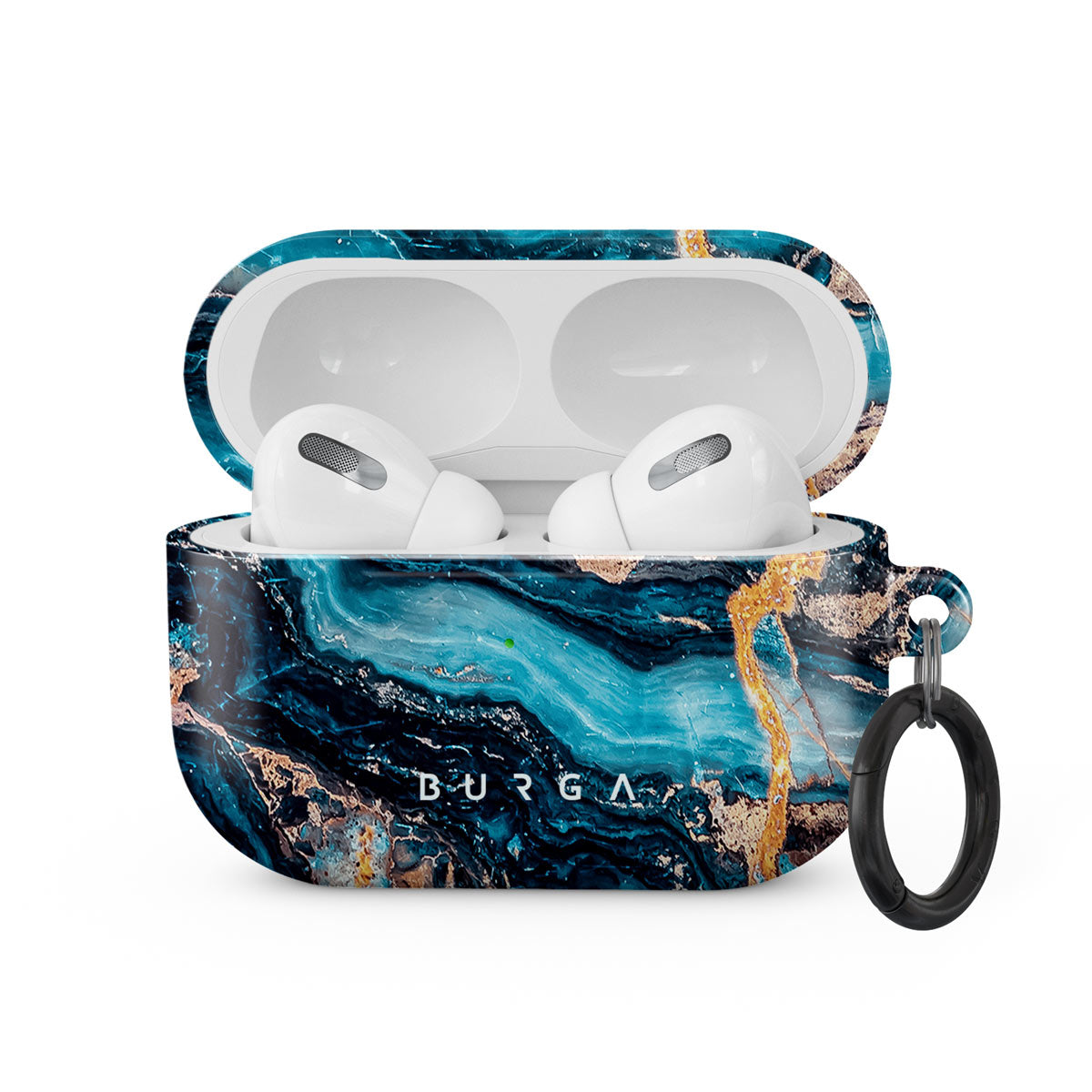 With our most loved Mystic River blue marble Apple Airpods Pro case cover, take a dive into the wondrous world of blue marble swirls. Take care of your AirPods case and protect it while also making it a part of your accessory collection. Our case fits perfectly snug around Apple Airpods Pro . “Like a glove!” one might say. And it won’t disrupt the wireless charging capabilities of the newer model. There’s even an LED light indicator to prove it (don’t worry, wired charging still works, too). When fitted, the BURGA case will protect the delicate Apple Airpods Pro case beneath it from scratches, bumps, and drops while remaining scratch-free itself. Our signature design pattern prints are High Quality, and will never peel or fade away- thanks to our unique printing technology. And finally, a handy carabiner is there to make your life easier and more convenient: just snap it around your keys or belt loop and tackle the day head-on. Your music is right there by your side when you need it.