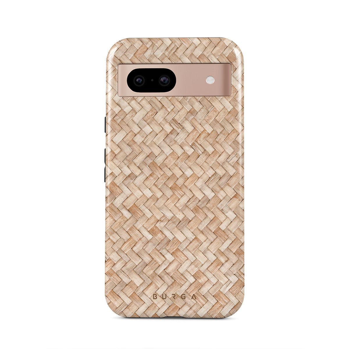 Inspired by a traditional Lauhala Matting, our Boho Dreams Google Pixel 8a phone case will surely remind you of a tropical vacation. Carry this feeling of relaxation with this Boho chic case that will also protect your phone.
