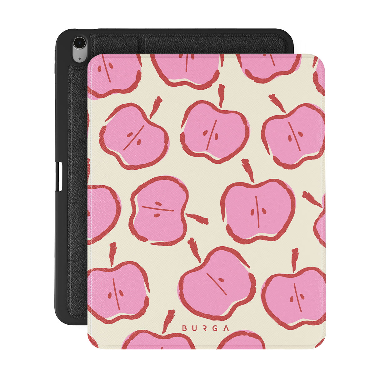 Our Bon Appétit iPad Air 13 (7th/6th Gen) folio case design makes every day feel like a magical adventure filled with sweet surprises. The playful pink hues of the apples stand out brilliantly against the serene cream background, creating a captivating and enchanting visual.