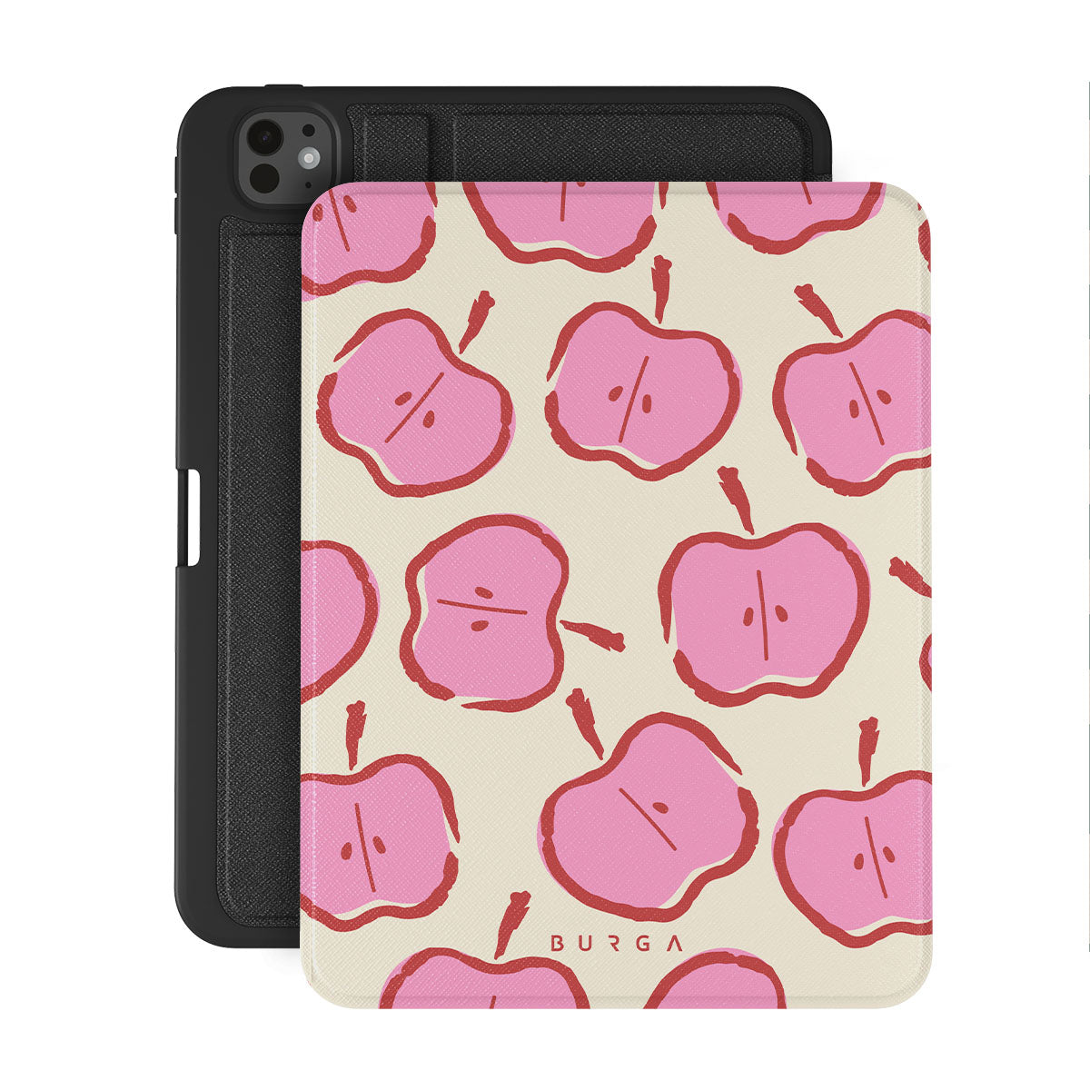 Our Bon Appétit iPad Pro 11 (8th/7th Gen) folio case design makes every day feel like a magical adventure filled with sweet surprises. The playful pink hues of the apples stand out brilliantly against the serene cream background, creating a captivating and enchanting visual.