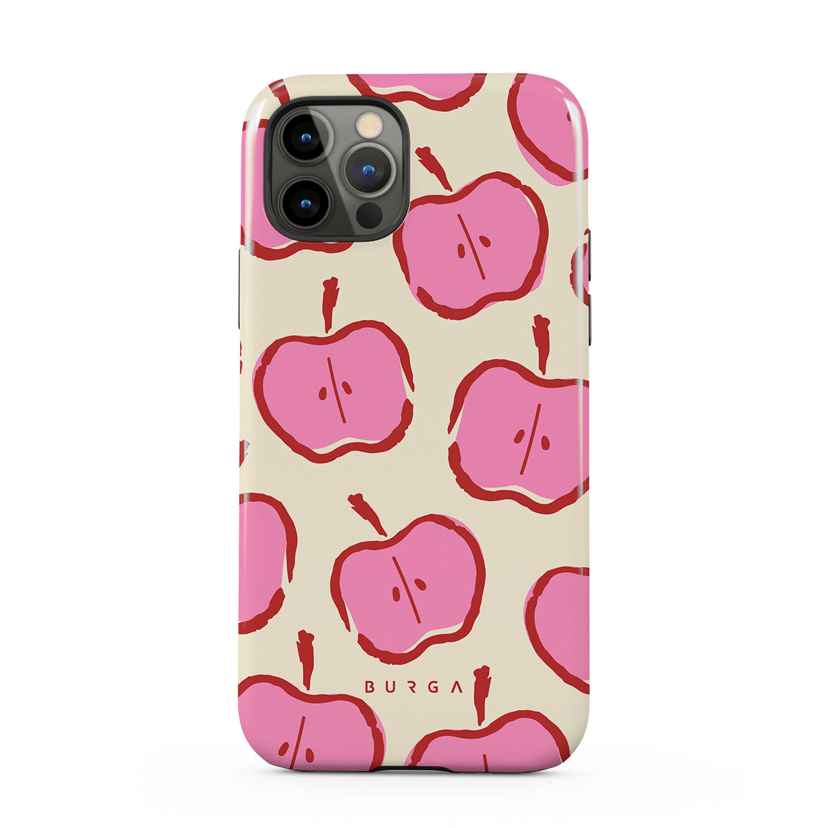Our Bon Appétit iPhone 12 Pro phone case design makes every day feel like a magical adventure filled with sweet surprises. The playful pink hues of the apples stand out brilliantly against the serene cream background, creating a captivating and enchanting visual.