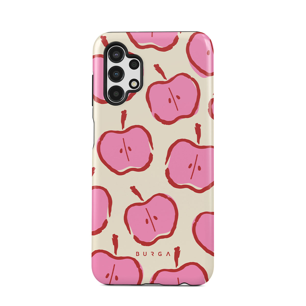 Our Bon Appétit Samsung Galaxy A13 4G phone case design makes every day feel like a magical adventure filled with sweet surprises. The playful pink hues of the apples stand out brilliantly against the serene cream background, creating a captivating and enchanting visual.