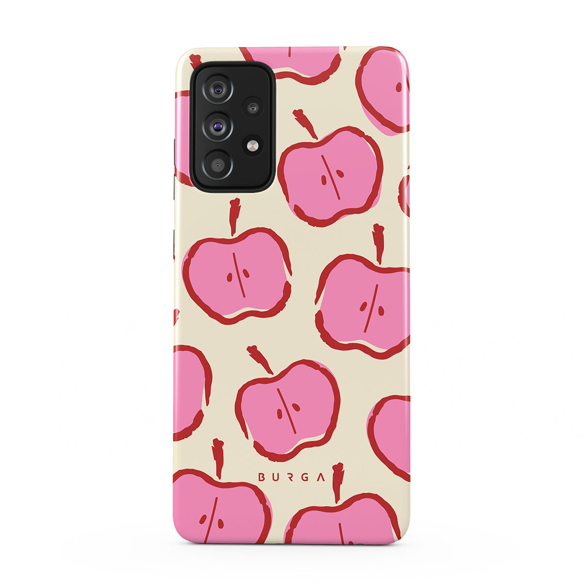 Our Bon Appétit Samsung Galaxy A52 / A52S 4G / 5G phone case design makes every day feel like a magical adventure filled with sweet surprises. The playful pink hues of the apples stand out brilliantly against the serene cream background, creating a captivating and enchanting visual.