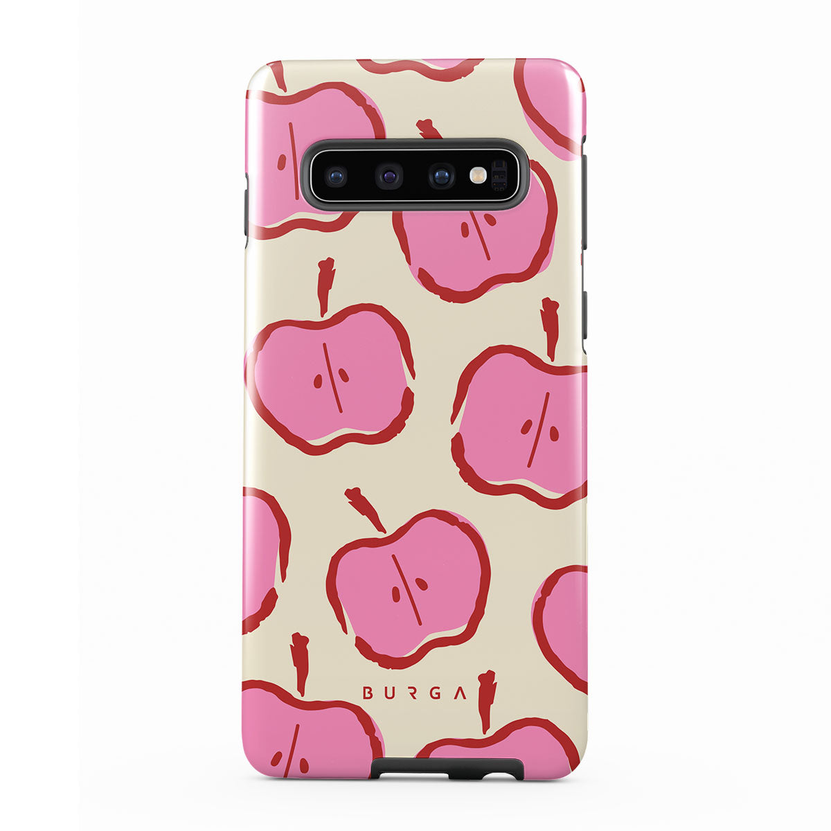 Our Bon Appétit Samsung Galaxy S10 4G phone case design makes every day feel like a magical adventure filled with sweet surprises. The playful pink hues of the apples stand out brilliantly against the serene cream background, creating a captivating and enchanting visual.
