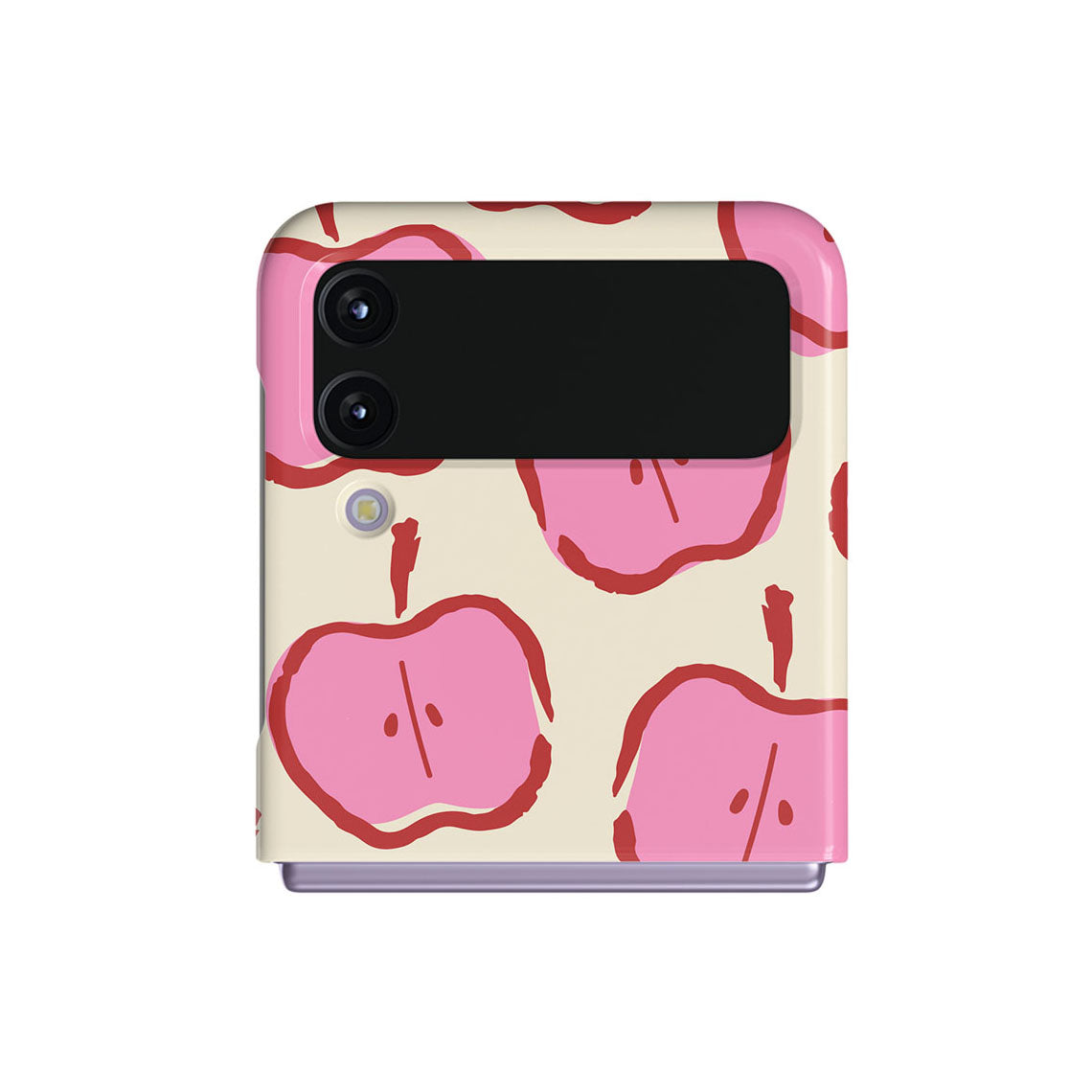 Our Bon Appétit Samsung Galaxy Z Flip 4 phone case design makes every day feel like a magical adventure filled with sweet surprises. The playful pink hues of the apples stand out brilliantly against the serene cream background, creating a captivating and enchanting visual.