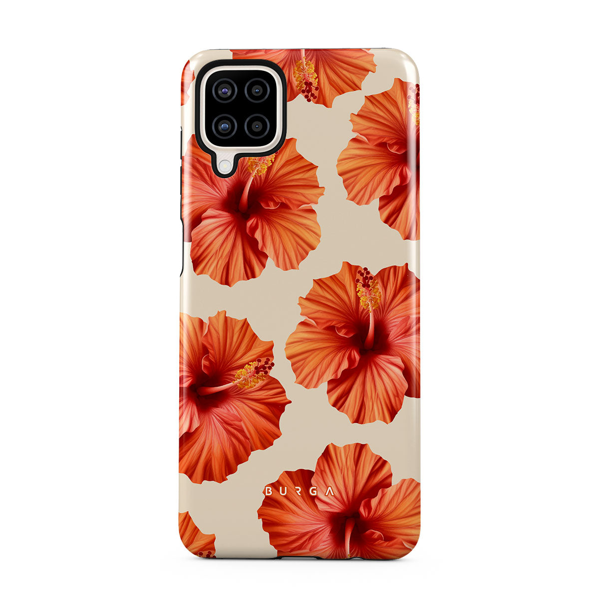 Transport yourself to a lush tropical escape with Bonita. Featuring bold, beautiful hibiscus blooms that pop against a creamy backdrop, this Samsung Galaxy A12 4G phone case design is perfect for those who dream of vibrant, floral beauty and exotic adventures.