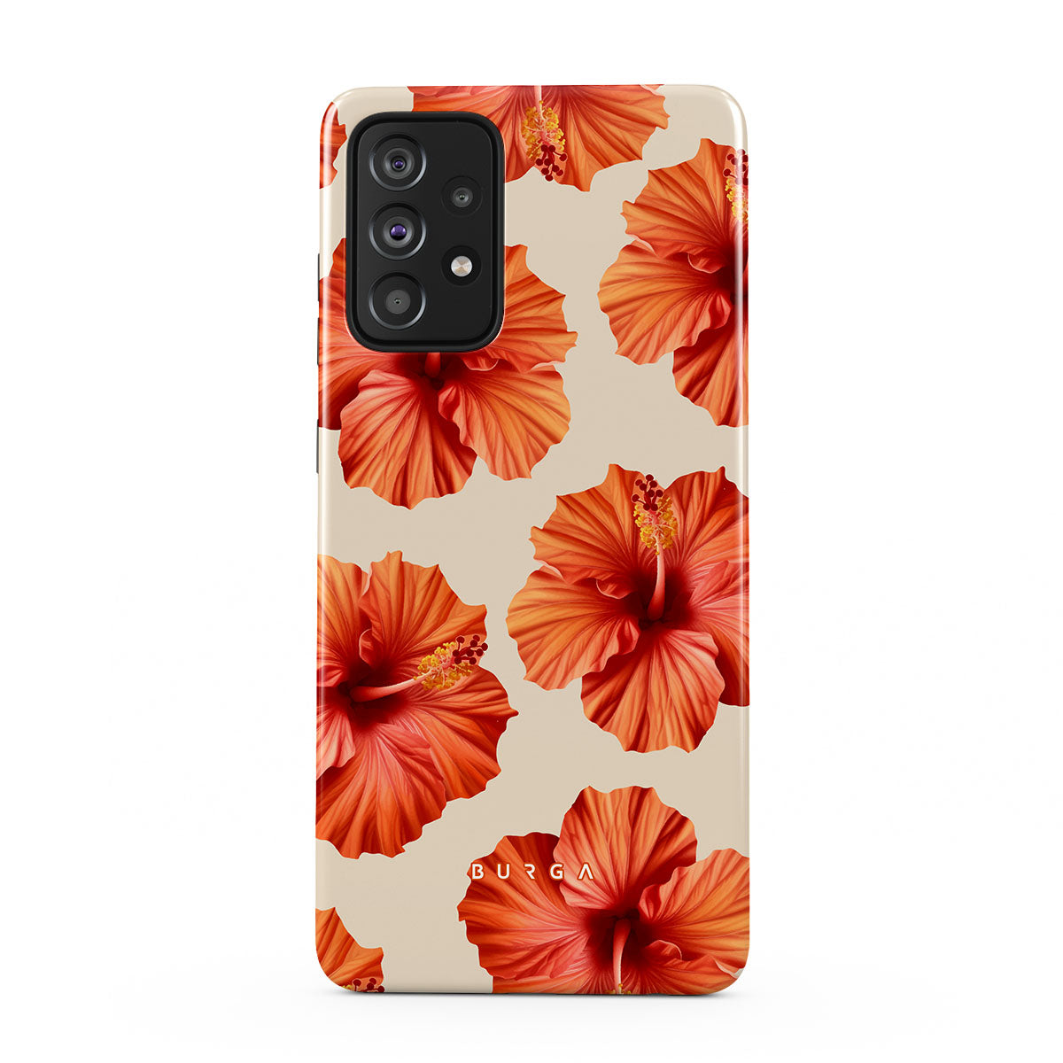 Transport yourself to a lush tropical escape with Bonita. Featuring bold, beautiful hibiscus blooms that pop against a creamy backdrop, this Samsung Galaxy A52 / A52S 4G / 5G phone case design is perfect for those who dream of vibrant, floral beauty and exotic adventures.