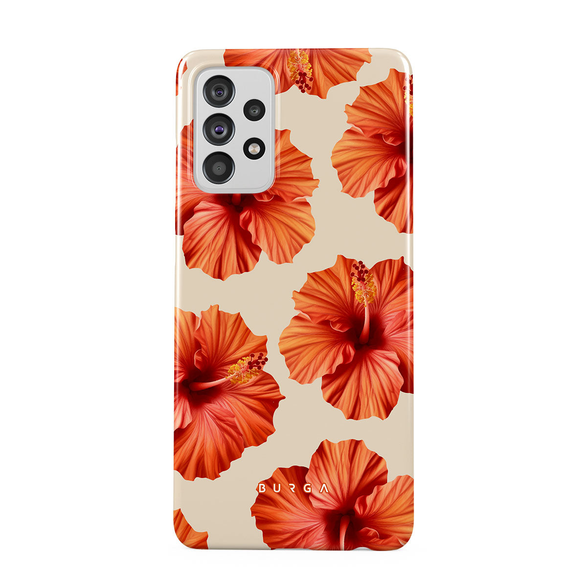 Transport yourself to a lush tropical escape with Bonita. Featuring bold, beautiful hibiscus blooms that pop against a creamy backdrop, this Samsung Galaxy A72 4G / 5G phone case design is perfect for those who dream of vibrant, floral beauty and exotic adventures.