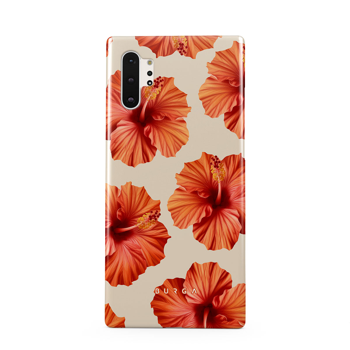 Transport yourself to a lush tropical escape with Bonita. Featuring bold, beautiful hibiscus blooms that pop against a creamy backdrop, this Samsung Galaxy Note 10 Plus phone case design is perfect for those who dream of vibrant, floral beauty and exotic adventures.