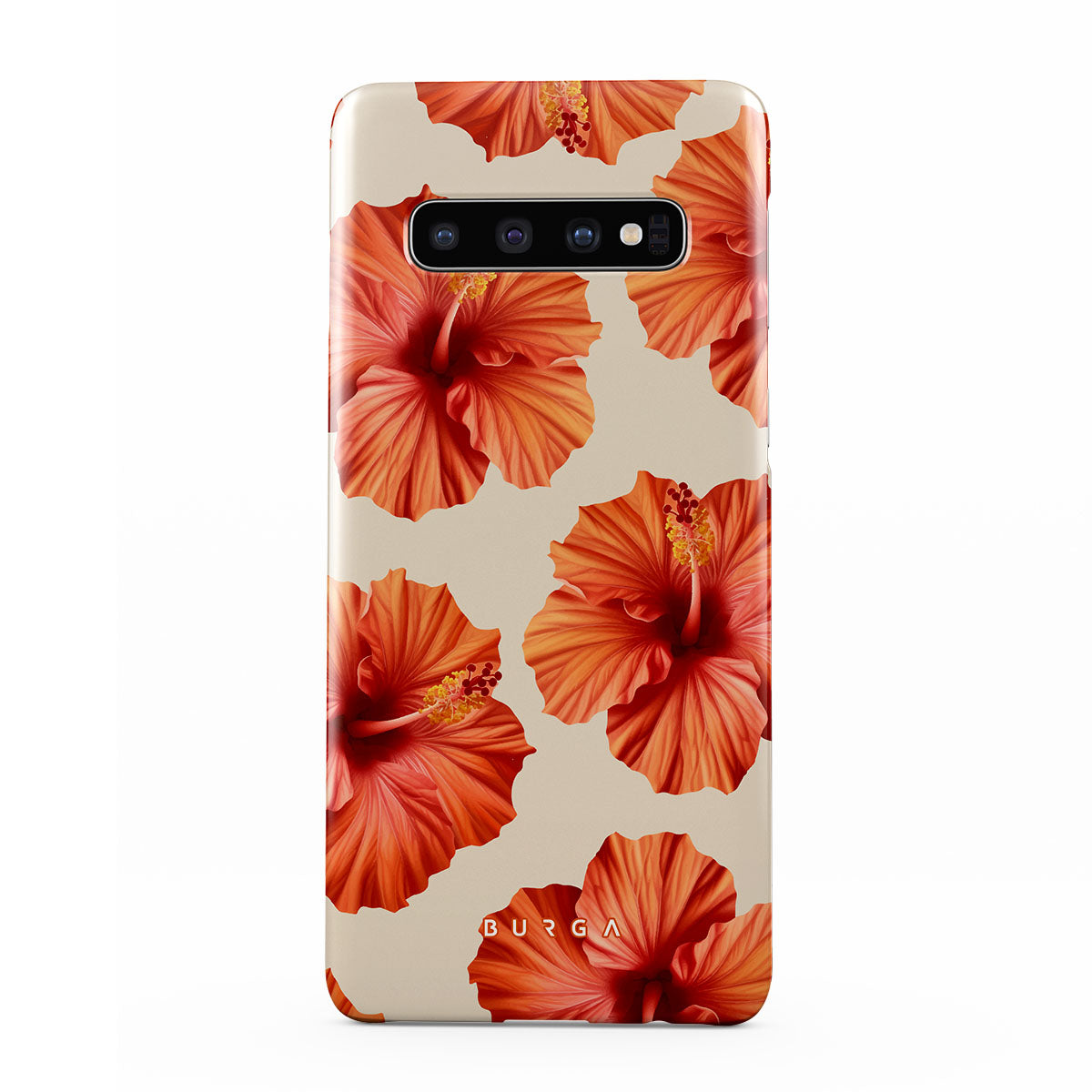 Transport yourself to a lush tropical escape with Bonita. Featuring bold, beautiful hibiscus blooms that pop against a creamy backdrop, this Samsung Galaxy S10 Plus phone case design is perfect for those who dream of vibrant, floral beauty and exotic adventures.