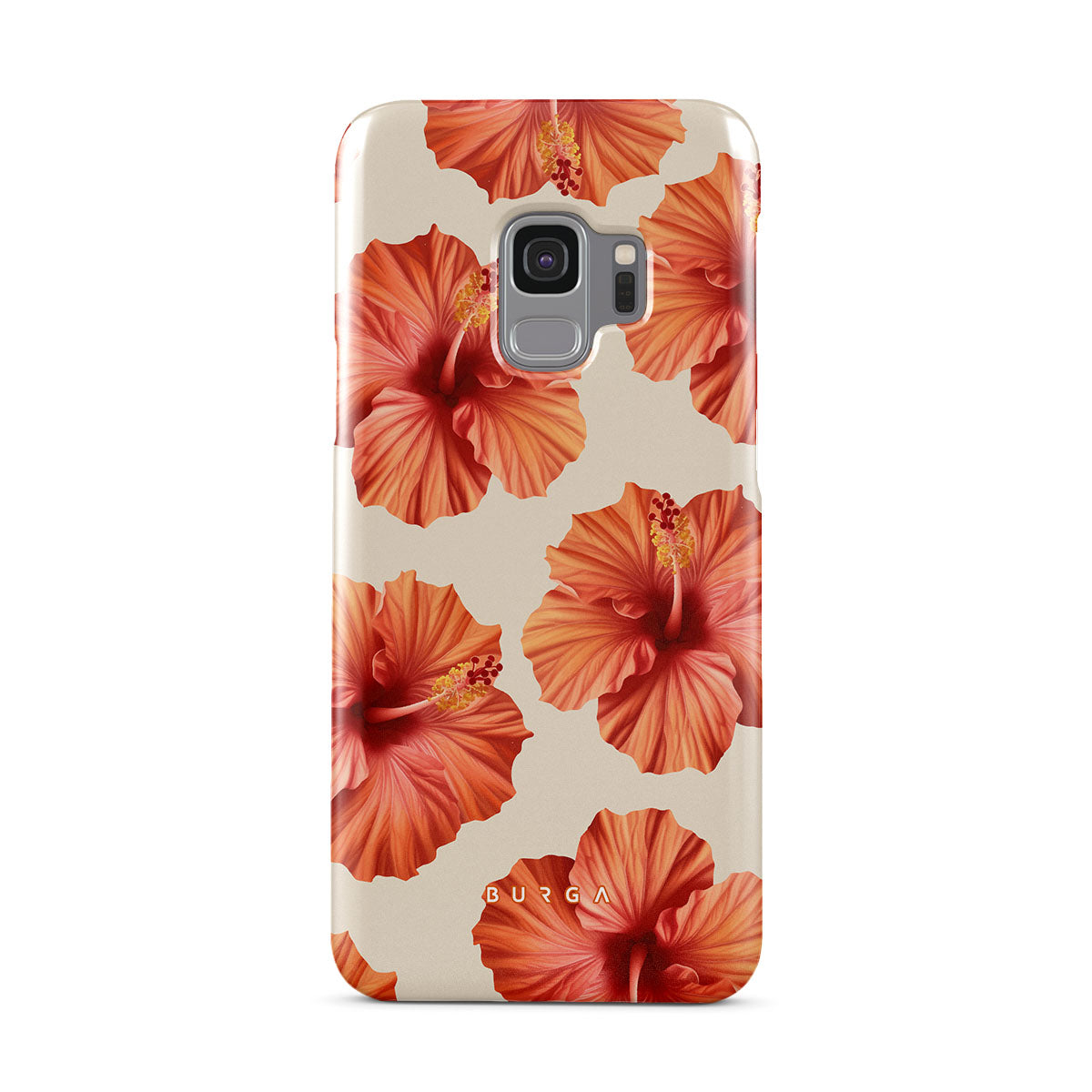 Transport yourself to a lush tropical escape with Bonita. Featuring bold, beautiful hibiscus blooms that pop against a creamy backdrop, this Samsung Galaxy S9 phone case design is perfect for those who dream of vibrant, floral beauty and exotic adventures.