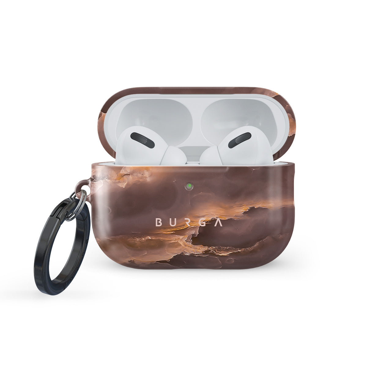 Our brown marble Apple AirPods Pro 3 case cover was inspired by the warm evenings sitting by the bonfire. Being by the fire is an excellent way to relax, and keeping a stylish accessory by your side will allow you to keep such memory at a close reach while protecting y Our case from any damage. Our case fits perfectly snug around Apple AirPods Pro 3 . “Like a glove!” one might say. And it won’t disrupt the wireless charging capabilities of the newer model. There’s even an LED light indicator to prove it (don’t worry, wired charging still works, too). When fitted, the BURGA case will protect the delicate Apple AirPods Pro 3 case beneath it from scratches, bumps, and drops while remaining scratch-free itself. Our signature design pattern prints are High Quality, and will never peel or fade away- thanks to our unique printing technology. And finally, a handy carabiner is there to make your life easier and more convenient: just snap it around your keys or belt loop and tackle the day head-on. Your music is right there by your side when you need it.