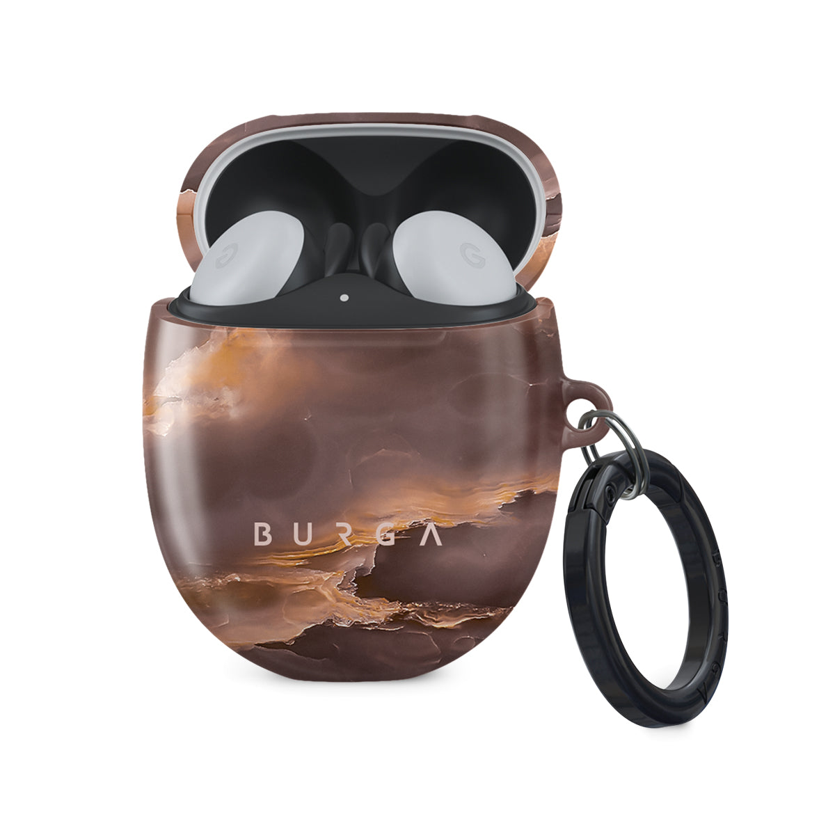 Our brown marble Google Pixel Buds 2 case cover was inspired by the warm evenings sitting by the bonfire. Being by the fire is an excellent way to relax, and keeping a stylish accessory by your side will allow you to keep such memory at a close reach while protecting y Our case from any damage. Our case fits perfectly snug around Google Pixel Buds 2 . “Like a glove!” one might say. And it won’t disrupt the wireless charging capabilities of the newer model. There’s even an LED light indicator to prove it (don’t worry, wired charging still works, too). When fitted, the BURGA case will protect the delicate Google Pixel Buds 2 case beneath it from scratches, bumps, and drops while remaining scratch-free itself. Our signature design pattern prints are High Quality, and will never peel or fade away- thanks to our unique printing technology. And finally, a handy carabiner is there to make your life easier and more convenient: just snap it around your keys or belt loop and tackle the day head-on. Your music is right there by your side when you need it.