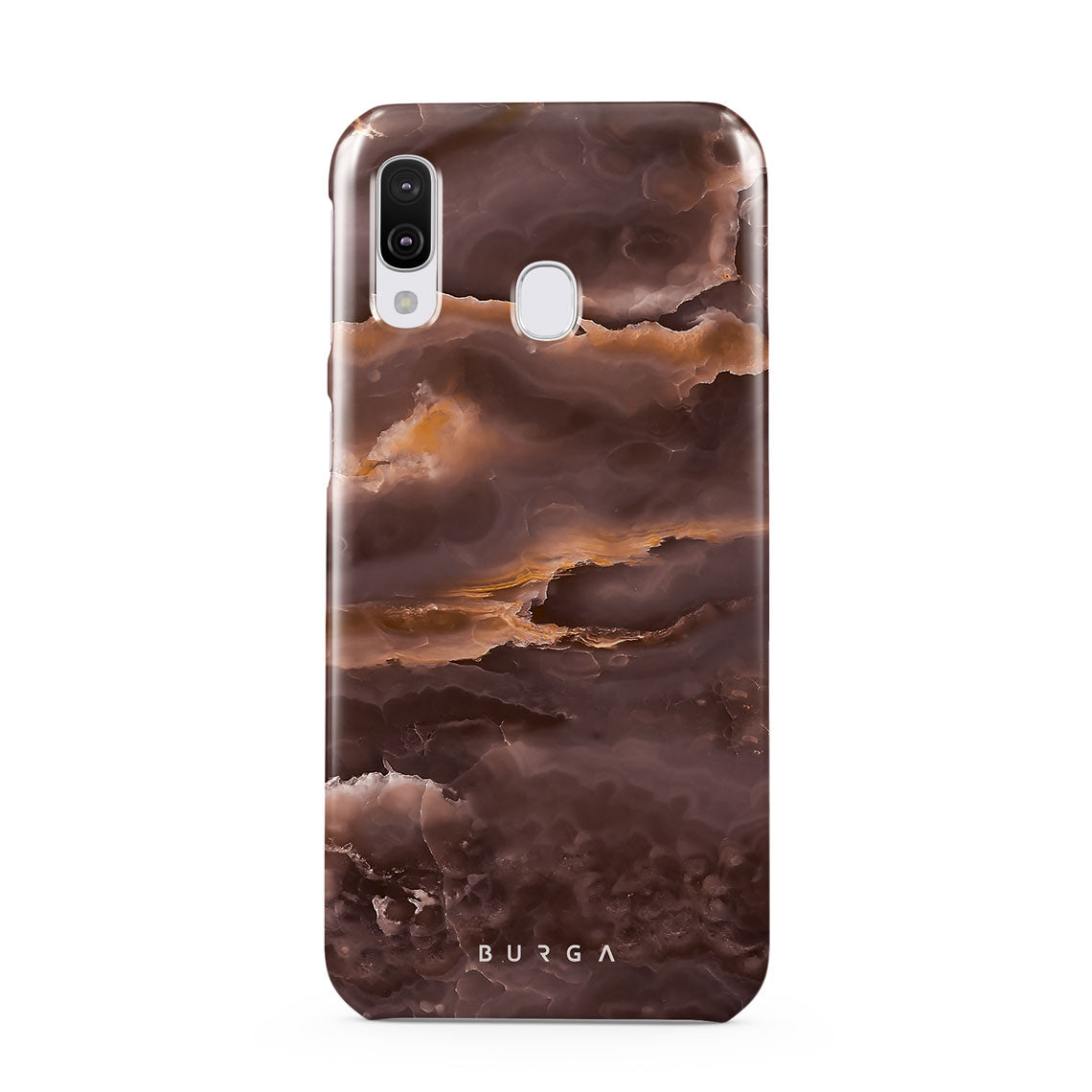 The bonfire starts to flicker – it's time to gather more wood. With a brown marble Samsung Galaxy A40 phone case design inspired by a bonfire flame, carry a feeling of content and excitement wherever you go. The protective case is needed in a hike, but a stylish accessory will match your aesthetic even on a lazy Sunday.