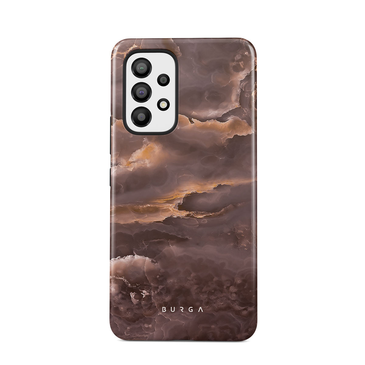 The bonfire starts to flicker – it's time to gather more wood. With a brown marble Samsung Galaxy A72 phone case design inspired by a bonfire flame, carry a feeling of content and excitement wherever you go. The protective case is needed in a hike, but a stylish accessory will match your aesthetic even on a lazy Sunday.