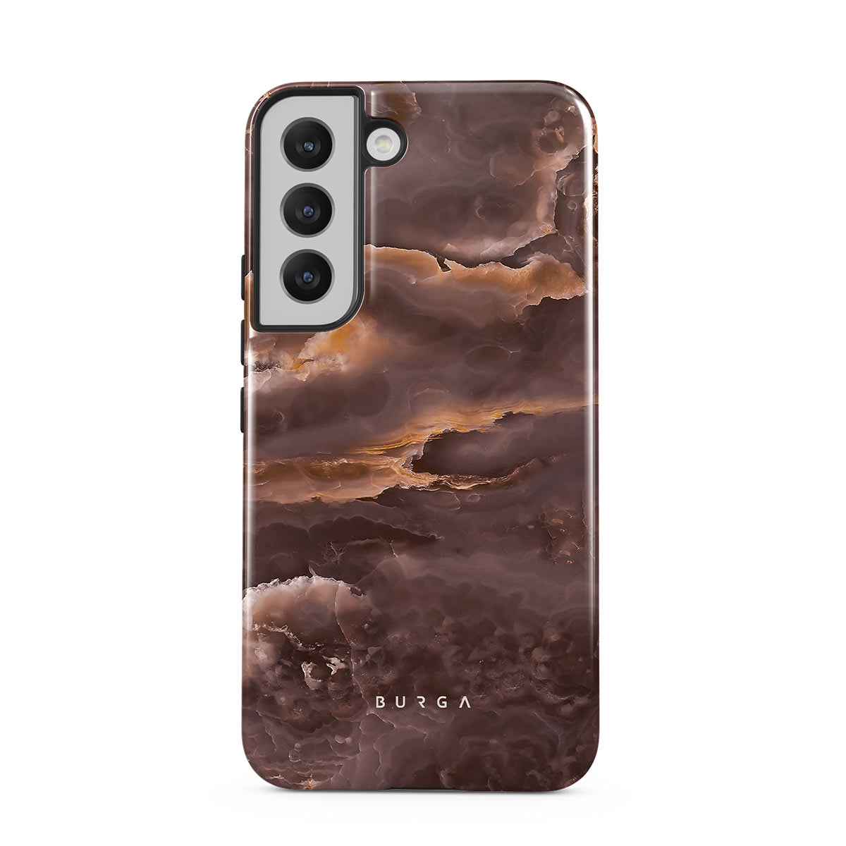 The bonfire starts to flicker – it's time to gather more wood. With a brown marble Samsung Galaxy S22 phone case design inspired by a bonfire flame, carry a feeling of content and excitement wherever you go. The protective case is needed in a hike, but a stylish accessory will match your aesthetic even on a lazy Sunday.