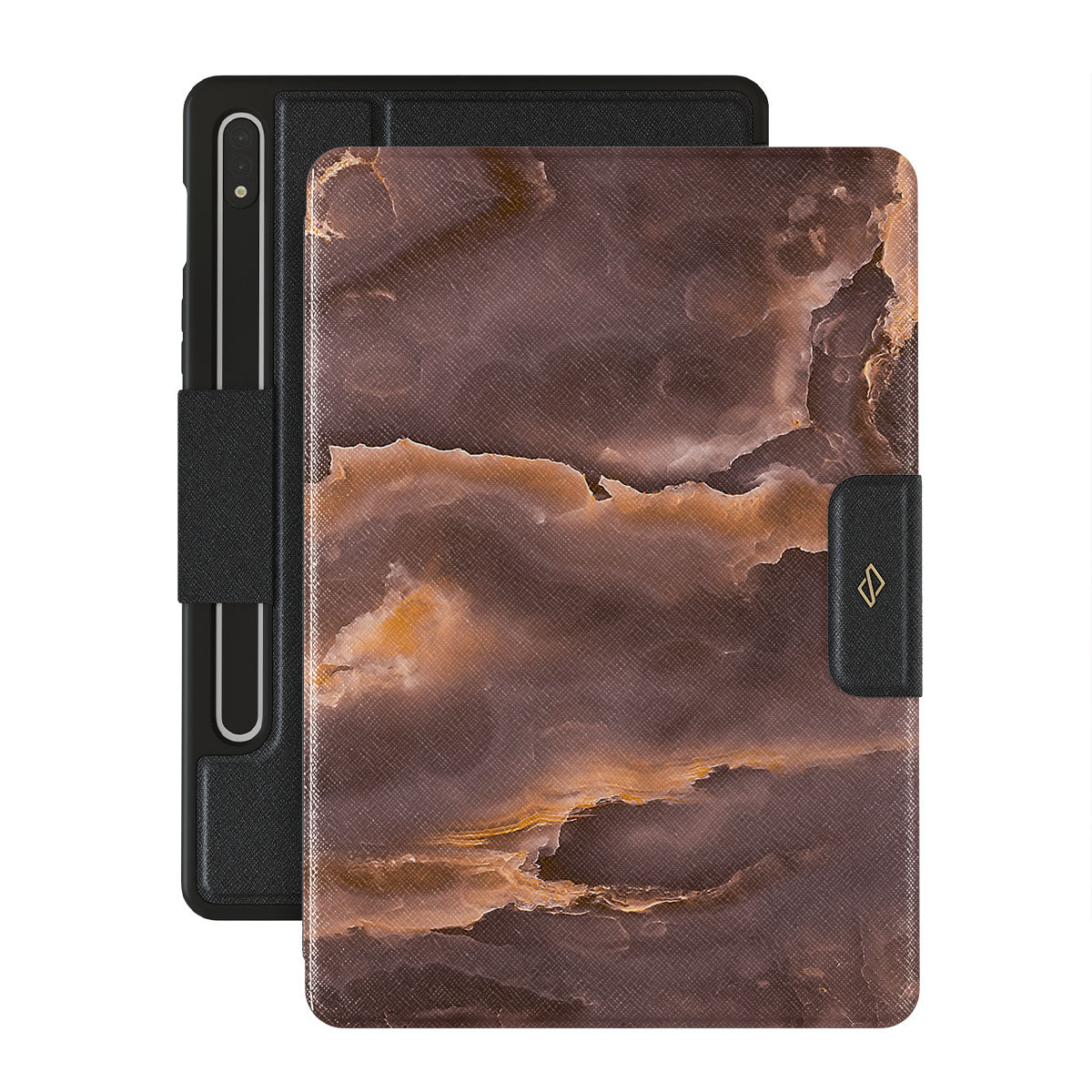 The bonfire starts to flicker – it's time to gather more wood. With a brown marble Samsung Galaxy Tab S10+ folio case design inspired by a bonfire flame, carry a feeling of content and excitement wherever you go. The protective case is needed in a hike, but a stylish accessory will match your aesthetic even on a lazy Sunday.
