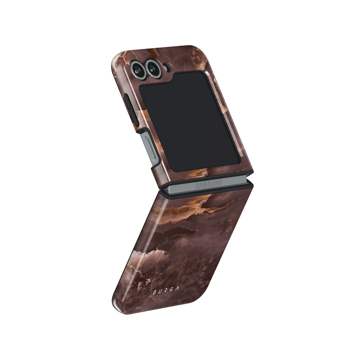 The bonfire starts to flicker – it's time to gather more wood. With a brown marble Samsung Galaxy Z Flip 6 phone case design inspired by a bonfire flame, carry a feeling of content and excitement wherever you go. The protective case is needed in a hike, but a stylish accessory will match your aesthetic even on a lazy Sunday.