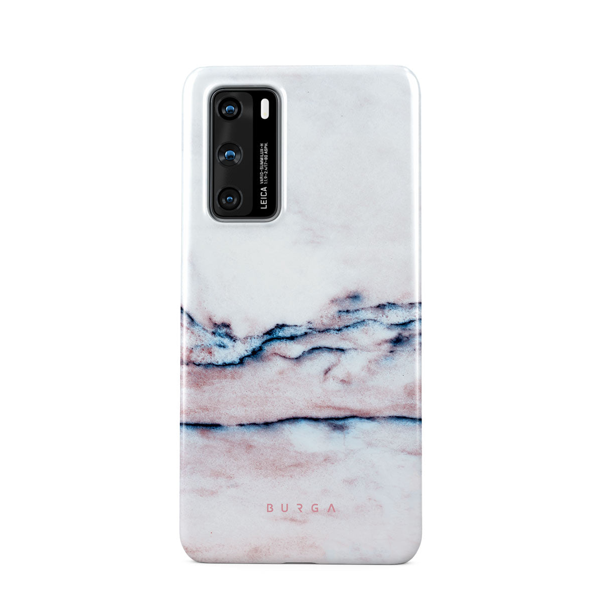 A pastel phone case is a must in every collection, and our soft Bubble Gum Huawei P40 phone case is the one. The minimalistic design features a pink gradient with deep blue swirls in a marble pattern. Such a hard-shell case will provide heavy-duty protection while adding a touch of pastel to your collection