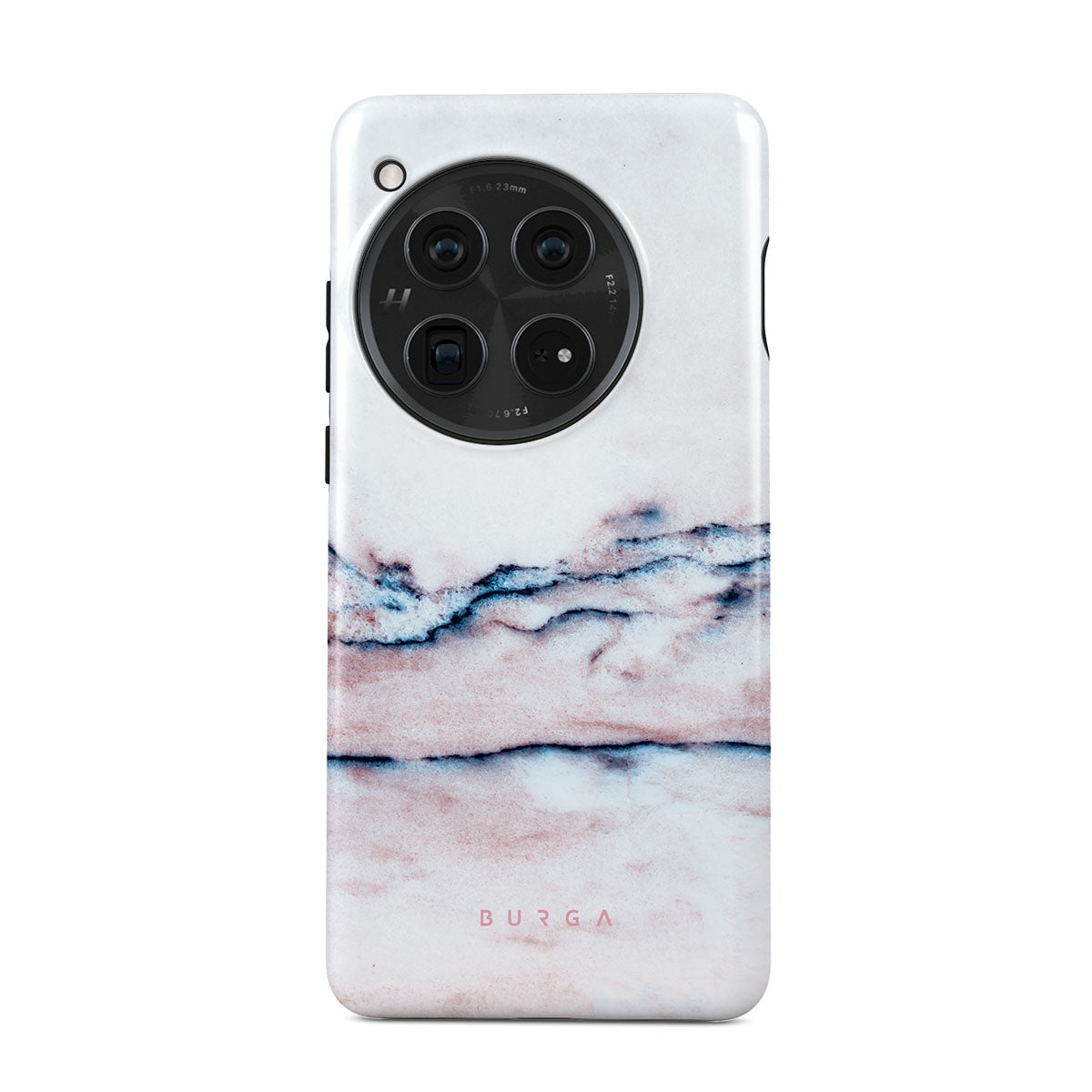 A pastel phone case is a must in every collection, and our soft Bubble Gum OnePlus 12 phone case is the one. The minimalistic design features a pink gradient with deep blue swirls in a marble pattern. Such a hard-shell case will provide heavy-duty protection while adding a touch of pastel to your collection