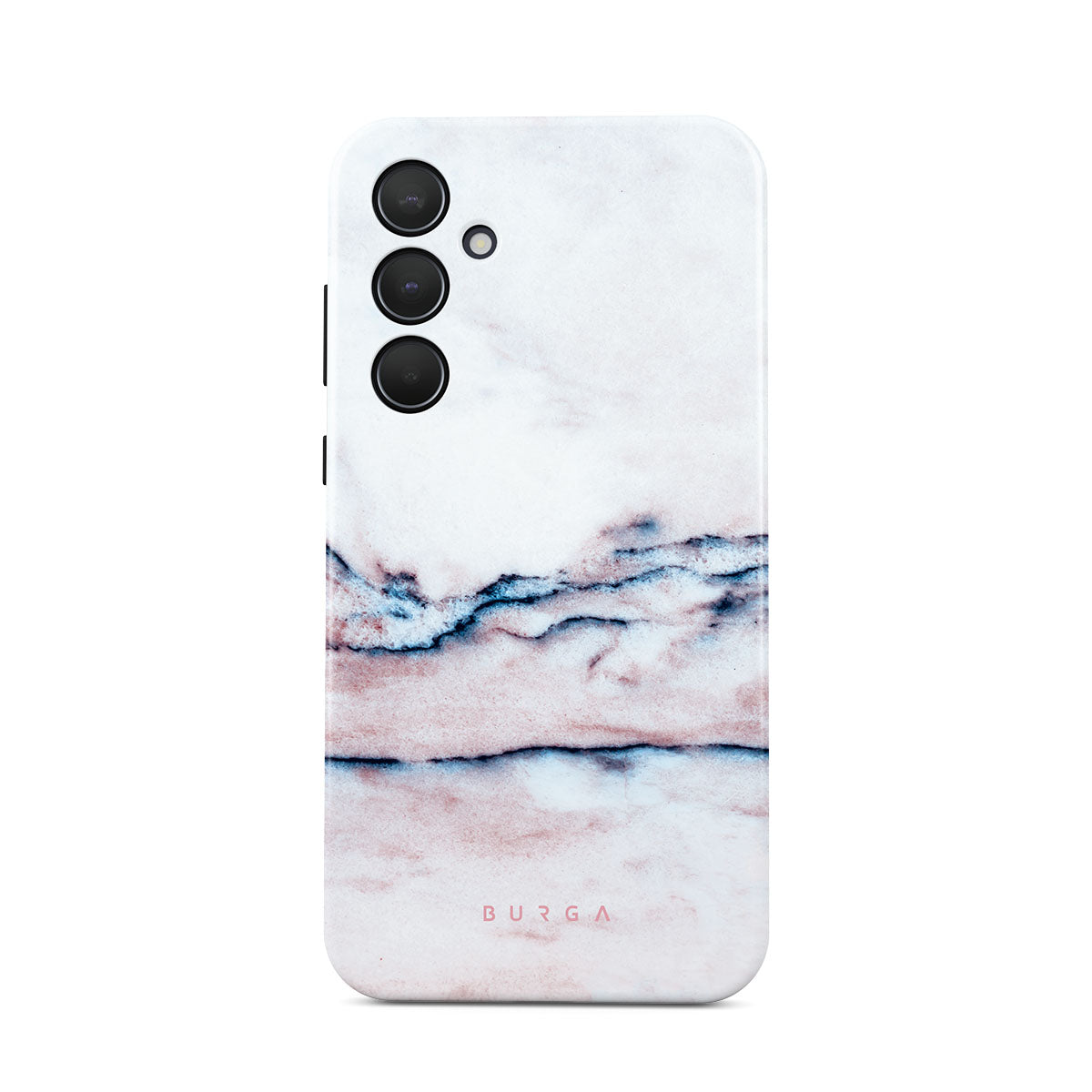 A pastel phone case is a must in every collection, and our soft Bubble Gum Samsung Galaxy A51 phone case is the one. The minimalistic design features a pink gradient with deep blue swirls in a marble pattern. Such a hard-shell case will provide heavy-duty protection while adding a touch of pastel to your collection
