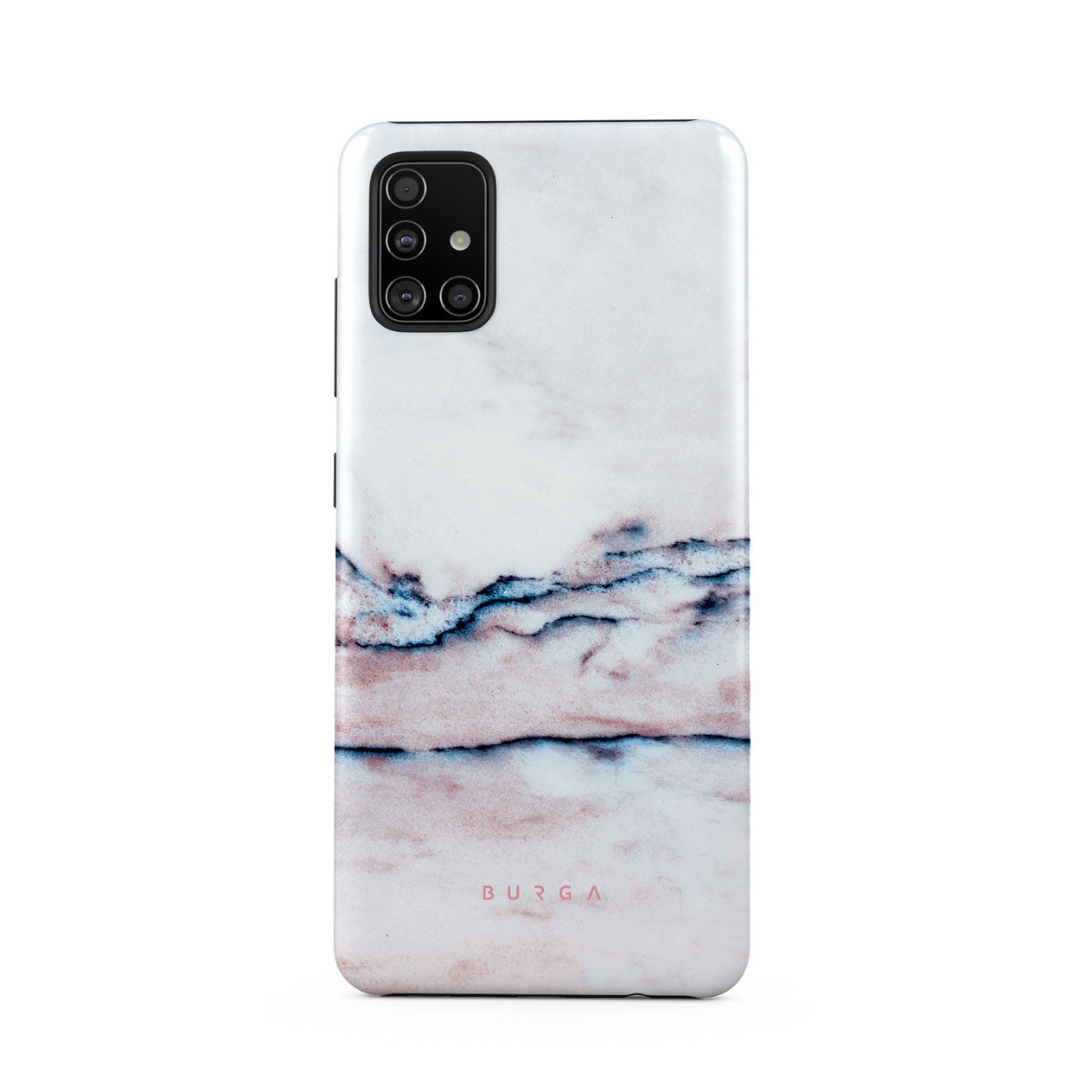 A pastel phone case is a must in every collection, and our soft Bubble Gum Samsung Galaxy A71 phone case is the one. The minimalistic design features a pink gradient with deep blue swirls in a marble pattern. Such a hard-shell case will provide heavy-duty protection while adding a touch of pastel to your collection