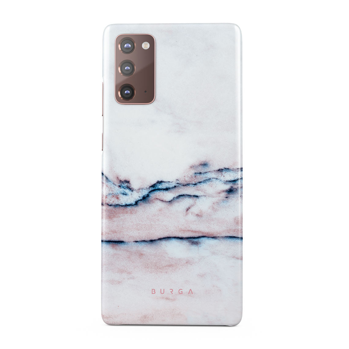 A pastel phone case is a must in every collection, and our soft Bubble Gum Samsung Galaxy Note 20 4G / 5G phone case is the one. The minimalistic design features a pink gradient with deep blue swirls in a marble pattern. Such a hard-shell case will provide heavy-duty protection while adding a touch of pastel to your collection