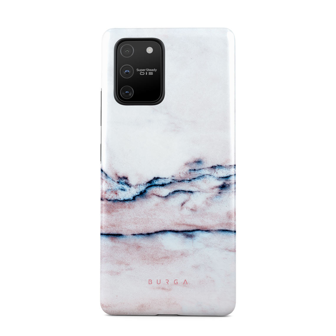 A pastel phone case is a must in every collection, and our soft Bubble Gum Samsung Galaxy S10 Lite phone case is the one. The minimalistic design features a pink gradient with deep blue swirls in a marble pattern. Such a hard-shell case will provide heavy-duty protection while adding a touch of pastel to your collection