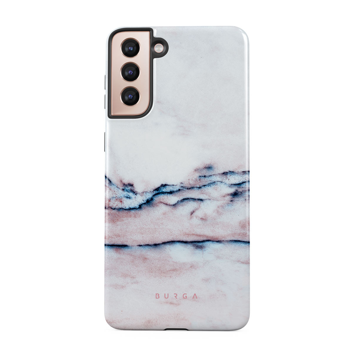A pastel phone case is a must in every collection, and our soft Bubble Gum Samsung Galaxy S21 Plus phone case is the one. The minimalistic design features a pink gradient with deep blue swirls in a marble pattern. Such a hard-shell case will provide heavy-duty protection while adding a touch of pastel to your collection