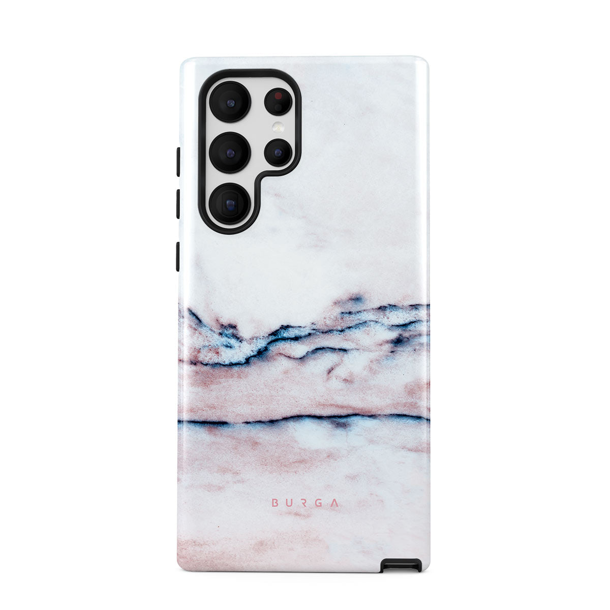 A pastel phone case is a must in every collection, and our soft Bubble Gum Samsung Galaxy S22 Ultra phone case is the one. The minimalistic design features a pink gradient with deep blue swirls in a marble pattern. Such a hard-shell case will provide heavy-duty protection while adding a touch of pastel to your collection