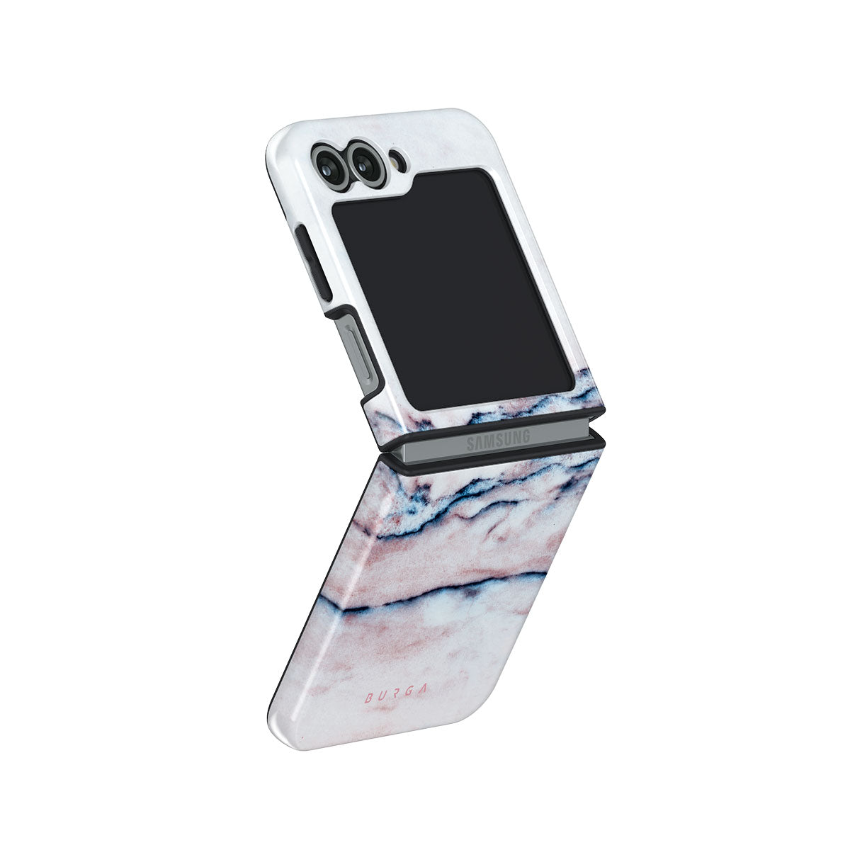 A pastel phone case is a must in every collection, and our soft Bubble Gum Samsung Galaxy Z Flip 6 phone case is the one. The minimalistic design features a pink gradient with deep blue swirls in a marble pattern. Such a hard-shell case will provide heavy-duty protection while adding a touch of pastel to your collection