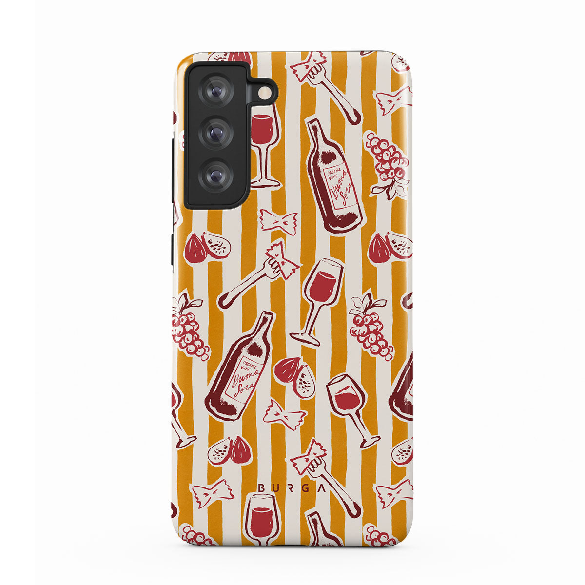 This Samsung Galaxy S21 FE phone case design is that just-before-dusk moment when the table’s full, the stories are flowing, and everything feels a little more beautiful than usual. It’s figs, forks, and a feeling you can’t quite name—but definitely want to stay in. This design features: fruit, figs, grapes, forks, pasta, wine, glass, stripesI love it!! There were so many options but this design was my favourite. It keeps my phone protected whilst looking amazing. Already got lots of compliments about it.💕