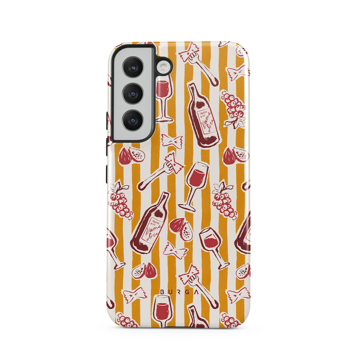 This Samsung Galaxy S22 Plus phone case design is that just-before-dusk moment when the table’s full, the stories are flowing, and everything feels a little more beautiful than usual. It’s figs, forks, and a feeling you can’t quite name—but definitely want to stay in. This design features: fruit, figs, grapes, forks, pasta, wine, glass, stripesAbsolutely obsessed with this Burga magnetic case for my Galaxy S22 Plus! The black lace with gold details gives it such an elegant, high-end vibe. It’s sturdy, sleek, and the magnetic feature works perfectly with my car mount and accessories. Stylish protection—what more could you want?