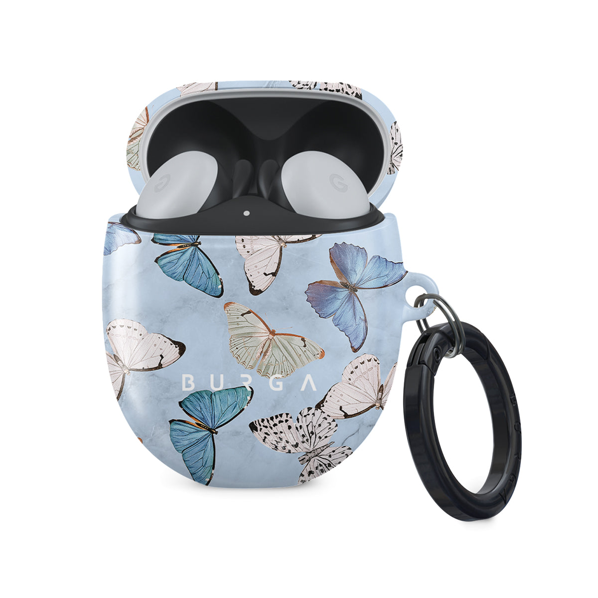 Add playfulness to your accessory game with our butterflies inspired Give Me Butterflies Google Pixel Buds 2 case cover. Keep your precious case safe in a pastel blue cover—no need to choose safety or fashion. Our case fits perfectly snug around Google Pixel Buds 2 . “Like a glove!” one might say. And it won’t disrupt the wireless charging capabilities of the newer model. There’s even an LED light indicator to prove it (don’t worry, wired charging still works, too). When fitted, the BURGA case will protect the delicate Google Pixel Buds 2 case beneath it from scratches, bumps, and drops while remaining scratch-free itself. Our signature design pattern prints are High Quality, and will never peel or fade away- thanks to our unique printing technology. And finally, a handy carabiner is there to make your life easier and more convenient: just snap it around your keys or belt loop and tackle the day head-on. Your music is right there by your side when you need it.