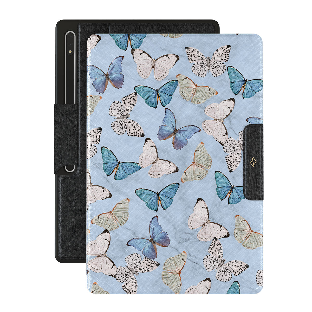 Pastel blue and a playful pattern of summery butterflies create a dreamy combination in our Samsung Galaxy Tab S8 Ultra folio case. Carry the feeling of the butterflies in your stomach while protecting your Galaxy Tab from any dangers, as the hard-shell case will keep it sound and safe.