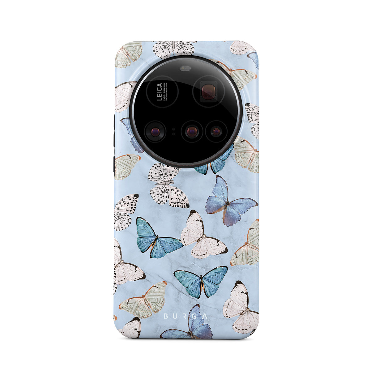 Pastel blue and a playful pattern of summery butterflies create a dreamy combination in our Xiaomi 15 Ultra phone case. Carry the feeling of the butterflies in your stomach while protecting your phone from any dangers, as the hard-shell case will keep it sound and safe.