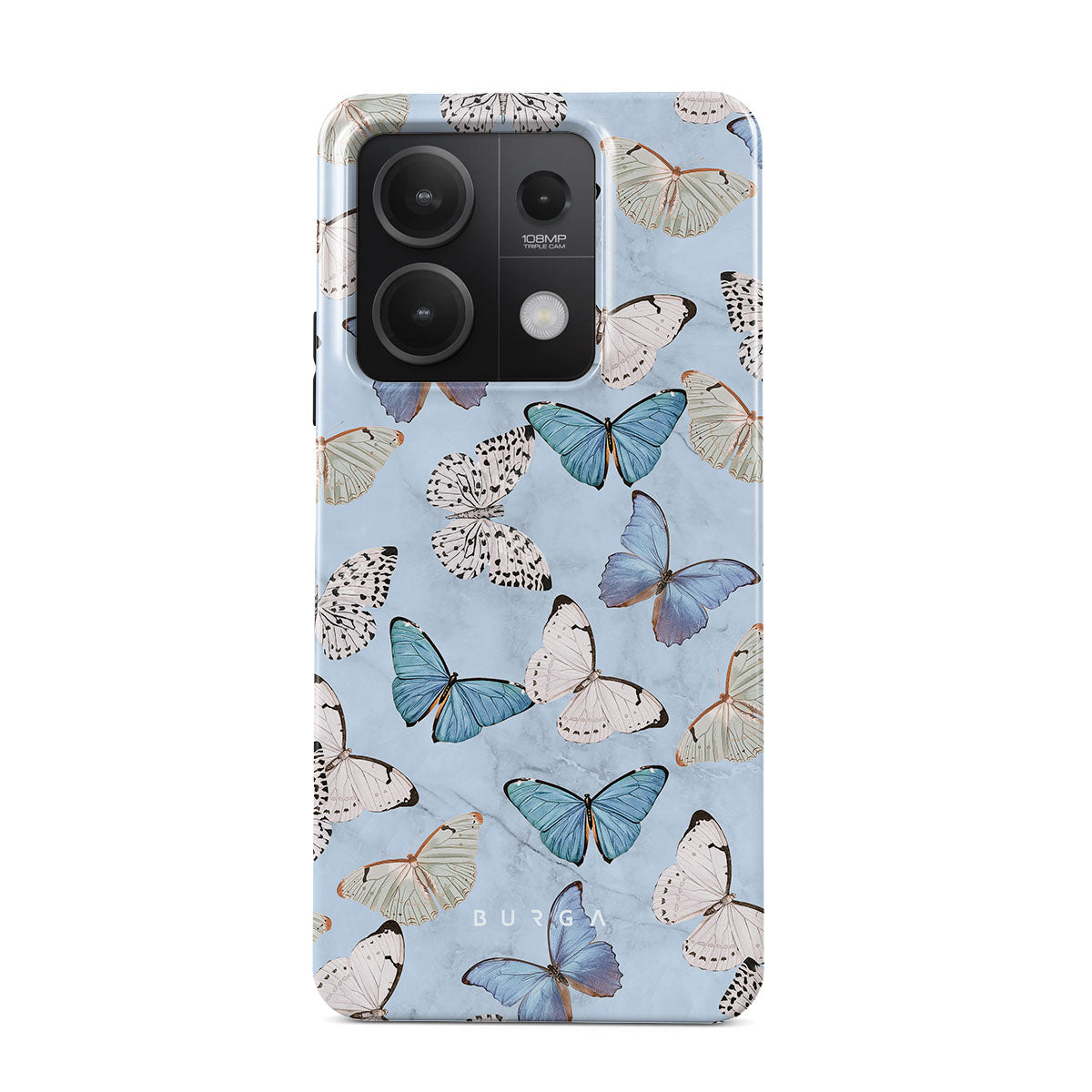 Pastel blue and a playful pattern of summery butterflies create a dreamy combination in our Xiaomi Redmi Note 13 5G phone case. Carry the feeling of the butterflies in your stomach while protecting your phone from any dangers, as the hard-shell case will keep it sound and safe.