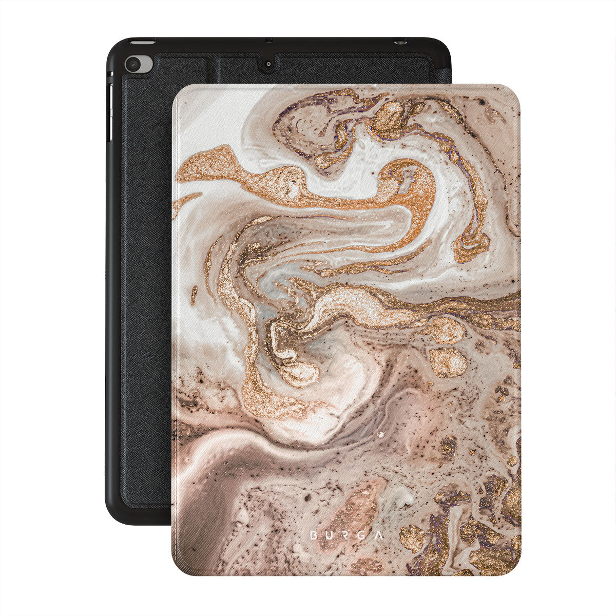 Our enchanting Cappuccino iPad Mini 7.9 (5th Gen) folio case showcases a sophisticated and creamy marble pattern with golden swirls in it. The marble dream radiates elegance and luxury and is guaranteed to add some to your style.