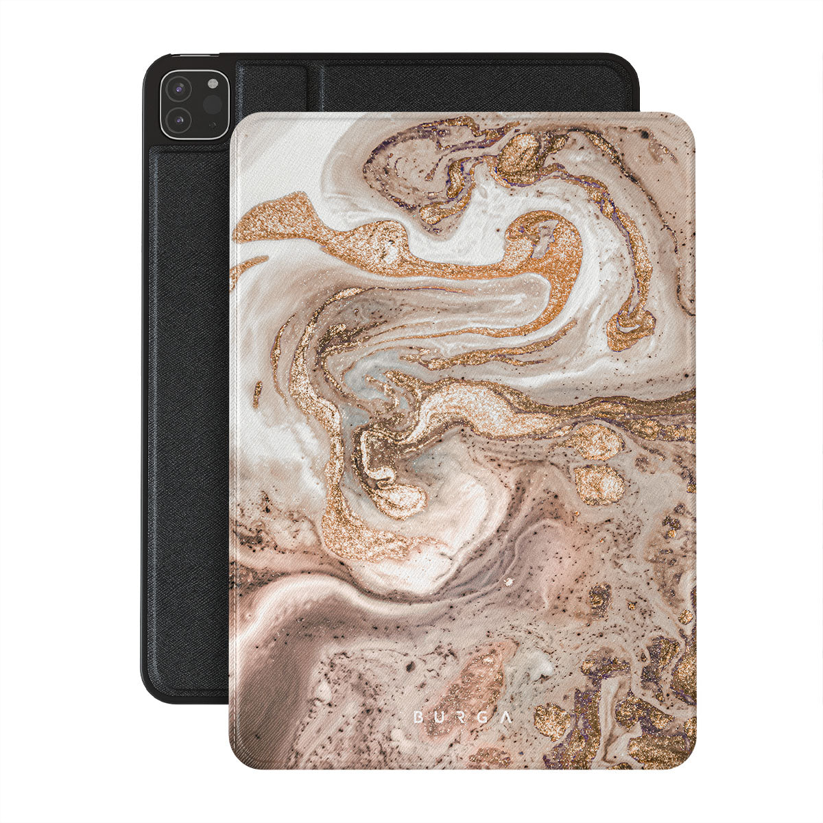 Our enchanting Cappuccino iPad Pro 12.9 (4th/3rd Gen) folio case showcases a sophisticated and creamy marble pattern with golden swirls in it. The marble dream radiates elegance and luxury and is guaranteed to add some to your style.