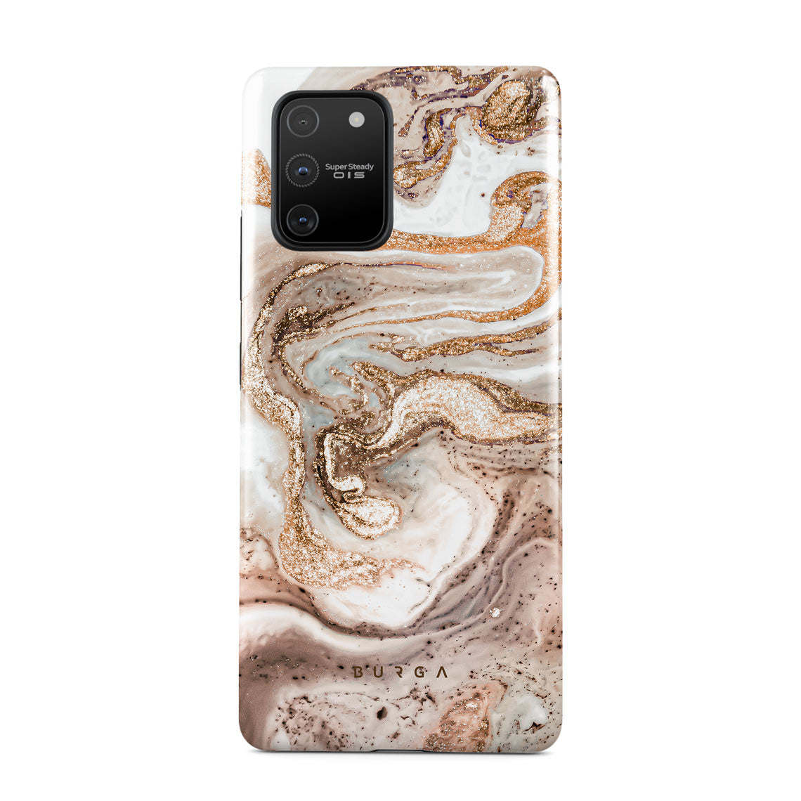 Our enchanting Cappuccino Samsung Galaxy S10 Lite phone case showcases a sophisticated and creamy marble pattern with golden swirls in it. The marble dream radiates elegance and luxury and is guaranteed to add some to your style.
