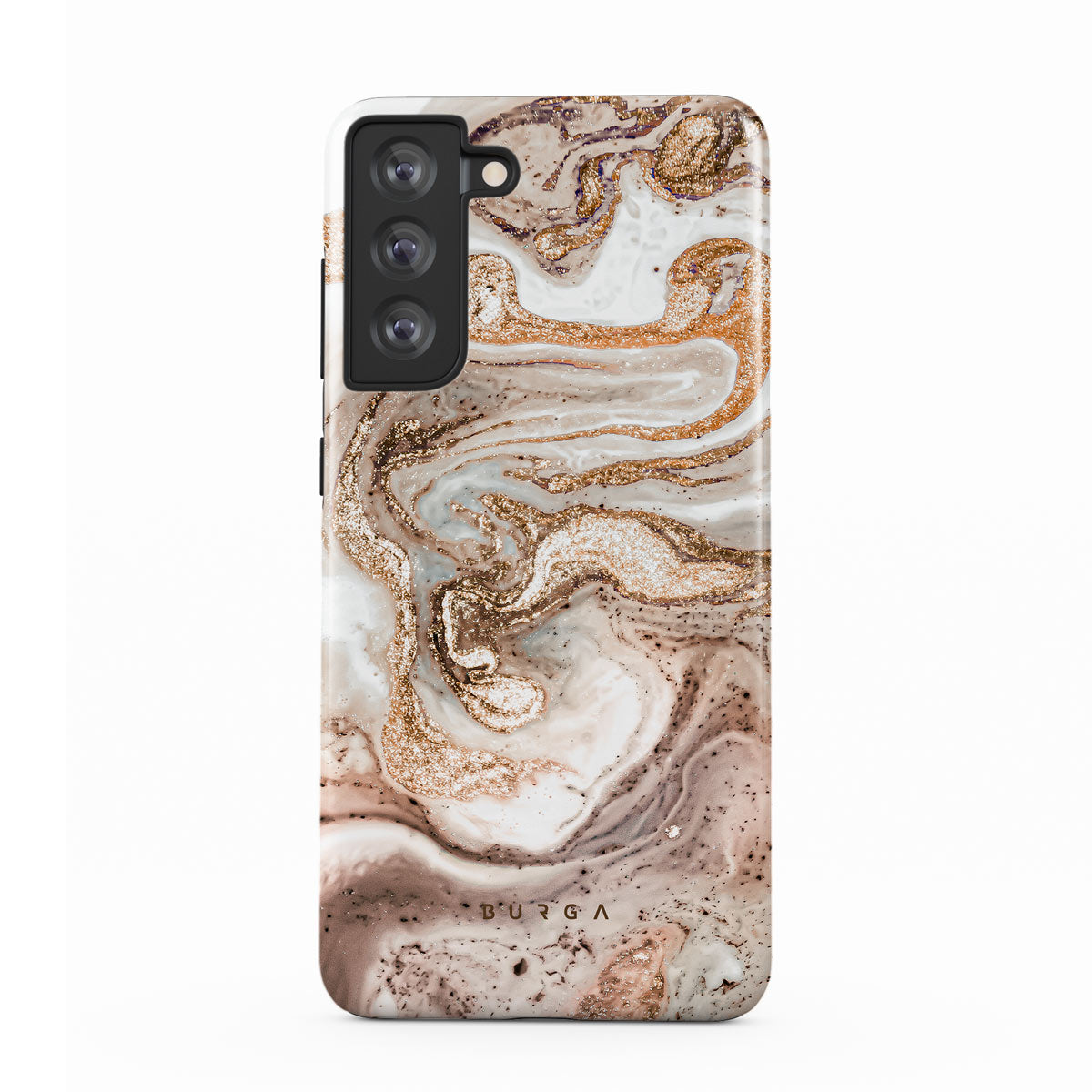 Our enchanting Cappuccino Samsung Galaxy S21 FE phone case showcases a sophisticated and creamy marble pattern with golden swirls in it. The marble dream radiates elegance and luxury and is guaranteed to add some to your style.