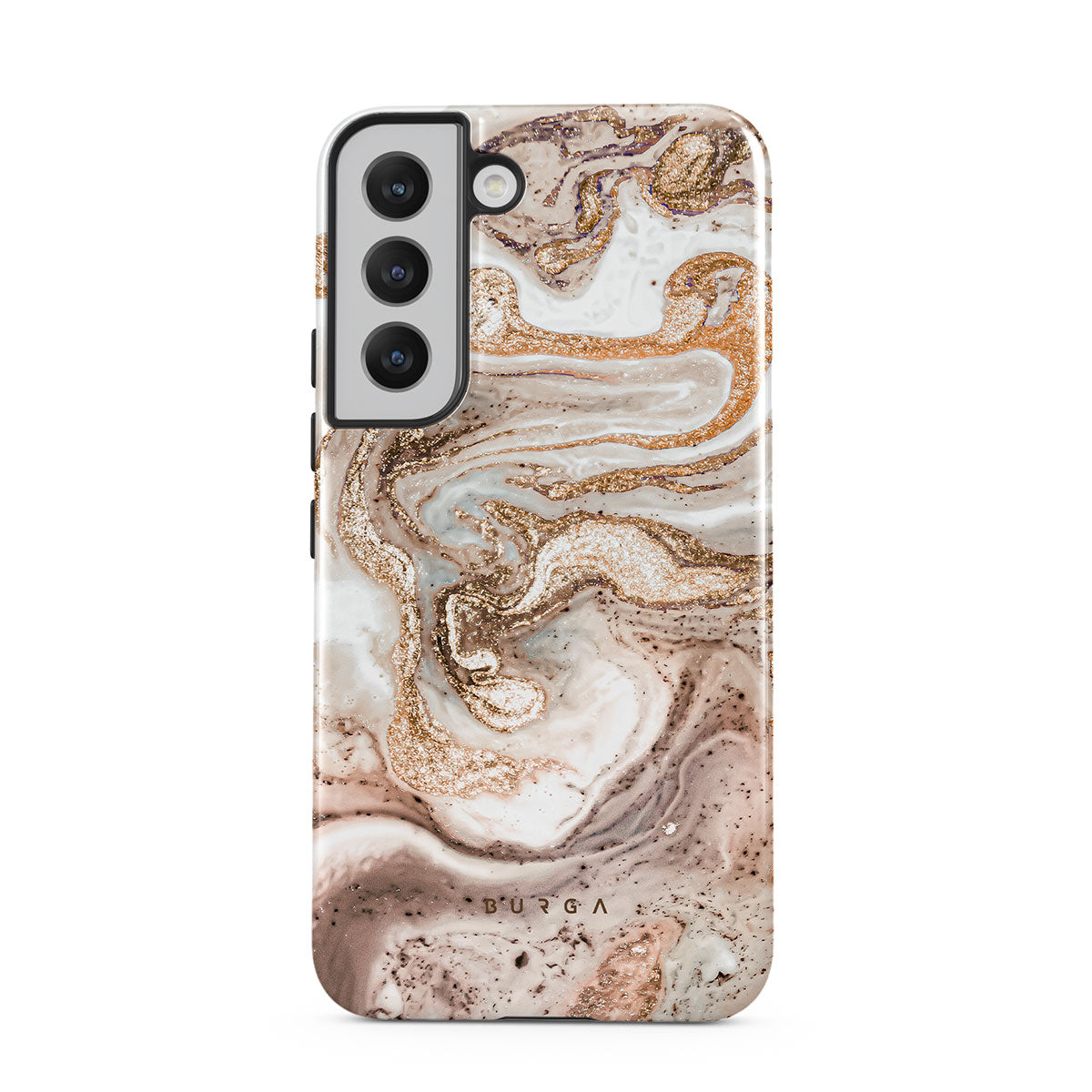 Our enchanting Cappuccino Samsung Galaxy S22 phone case showcases a sophisticated and creamy marble pattern with golden swirls in it. The marble dream radiates elegance and luxury and is guaranteed to add some to your style.